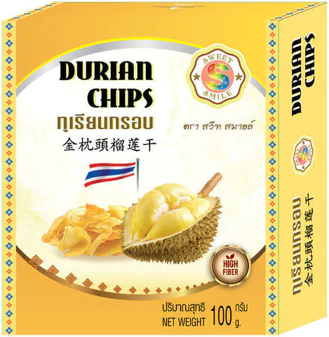 从泰国作用品质米蒙榴莲制成的真空油炸脆皮榴莲零食。